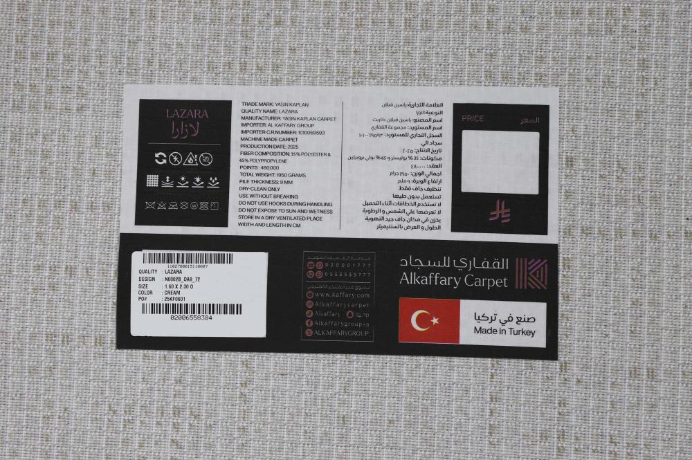 1.60X2.30 كريم OVAL أبيض لازارا N0002B_OA872 سجاد